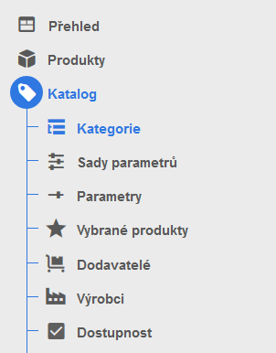 V levém menu klikneme na položku "Katalog" a systém nás automaticky přesměruje na první podpoložku "Kategorie".