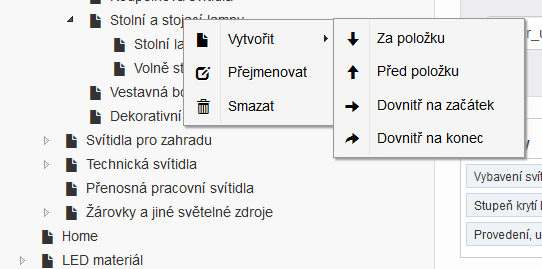 Klikneme pravým tlačítkem myši na existujicí položku ve stromové struktuře. Zobrazí se nám dialogové okno.