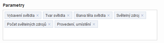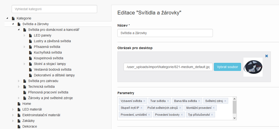 Pokud máte vytvořené parametry typu výčet, tak se vám zobrazí v tomto bloku. Výběrem parametrů u položky kategorie nastavíte zobrazení těchto parametrů ve FE a budou použity na parametrické vyhledávání.