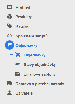 Pro zobrazení objednávek klikneme na položku "Objednávky" v levém menu.