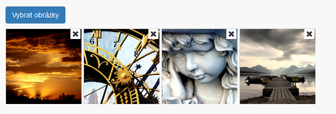 Klikneme na tlačítko "Vybrat obrázky". Z počítače vybereme obrázky a systém automaticky uploaduje obrázky na server. Pokud se nám nelíbí řazení, tak jednoduchým způsobem posunujeme obrázky do požadovaného zobrazení. Ikonkou křížkem pak obrázek odstraníme.