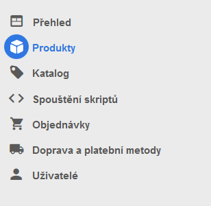 V levém menu klikneme na položku "Produkty" a zobrazí se nám seznam všech produktů: