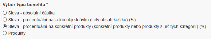 - Sleva - procentuální na konkrétní produkty (konkrétní produkty nebo produkty z určitých kategorií) (%)