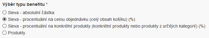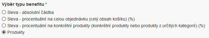 V tomto případě se slevou rozumí produkty. Nejedná se o snížení výsledné ceny, ale uživateli se nabídnou produkty, které jsme si nastavili.